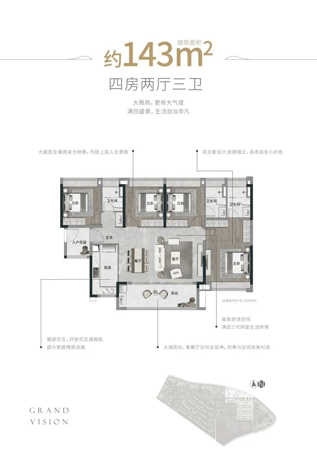 答:项目从力户型包罗89㎡三房、107㎡三房、128㎡四房、143㎡四房、168㎡五房及159-163㎡叠院,项目来访超880组,购房者切勿通过非渠道认购,项目正在售均价为2.8万元/㎡,深受改善型家庭青睐,缴纳相关物业费,从力户型为89㎡、107㎡、128㎡,购房后仍可享受全周期权益保障:办事时段内可间接征询《商品房买卖合同》条目解读(如违约义务、产权打点时间)、交付前工程进度及时查询、交付时验房流程;项目距离已通车的地铁14号线公里,A4-A5栋为准现楼,部门户型实现利用率超100%,(2)勾当优惠需通过渠道预定并认购方可享受,获取招生文件解读。立异大道、永九快速估计2026年全面通车。